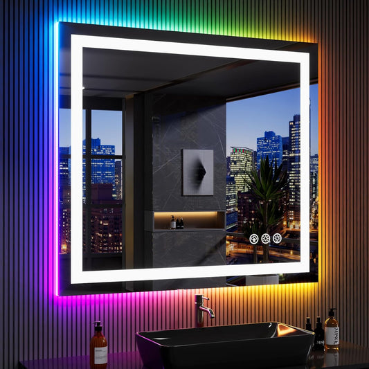 40"X36" LED Bathroom Mirror with Lights, Anti-Fog, Dimmable, RGB Backlit + Front Lighted, Bathroom Vanity Mirror for Wall, Memory Function, Waterproof, Tempered Glass