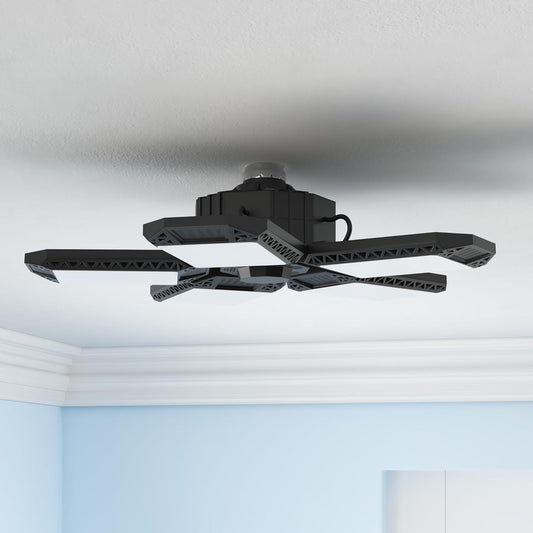 2 Pack LED Garage Lights, 120W Deformable LED Garage Ceiling Lights with 5 Adjustable Panels, 12000LM E26 LED Shop Lights for Garage, Basement, Barn, High Bay Light (2 Pack)